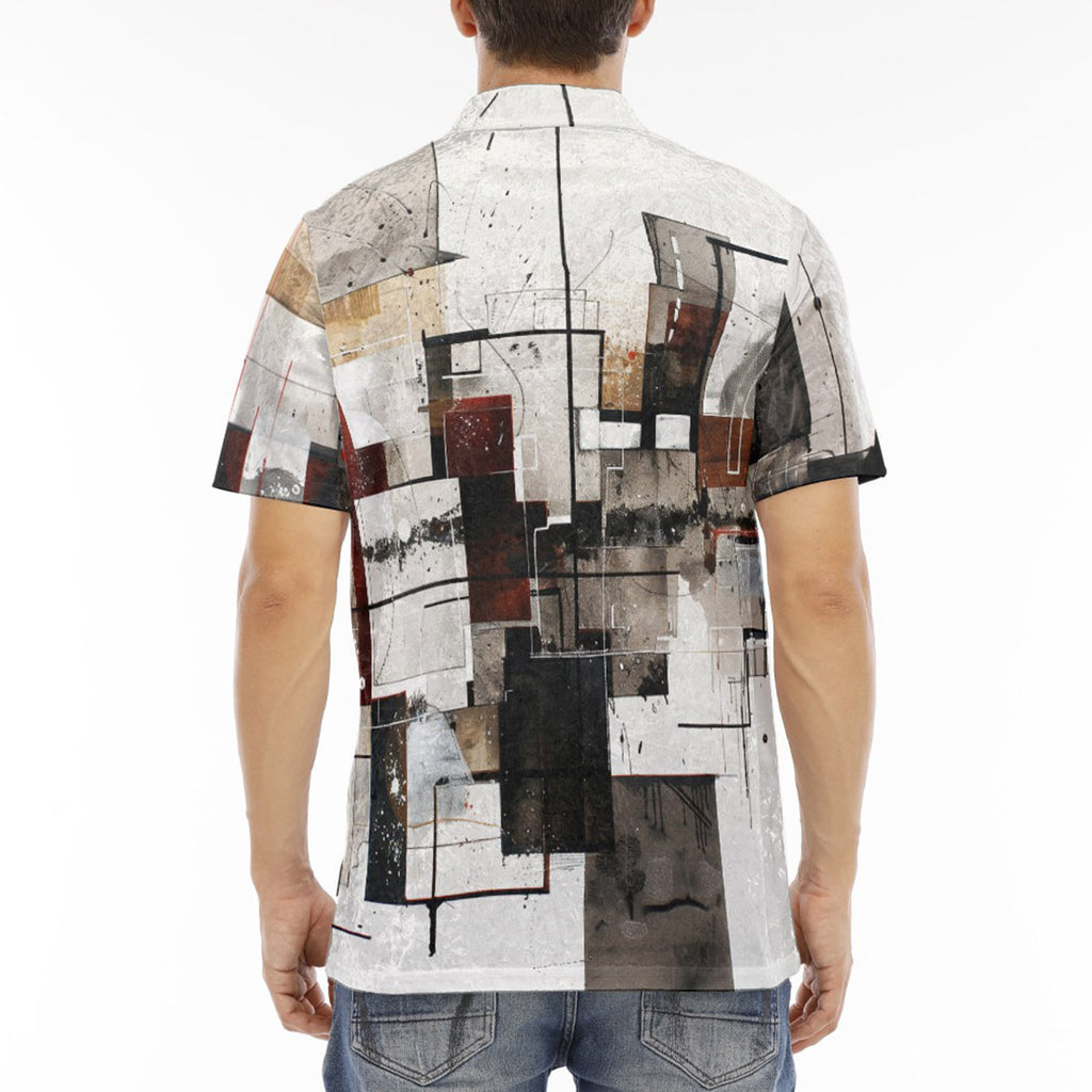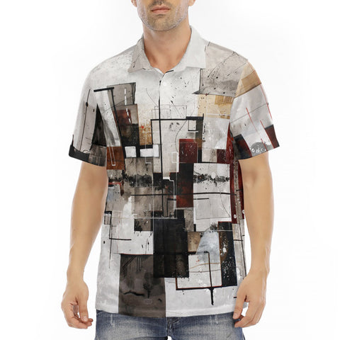 Men's Polo Shirt Modern Art Abstraction Brown and White