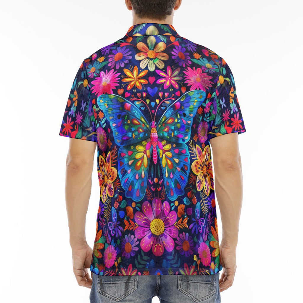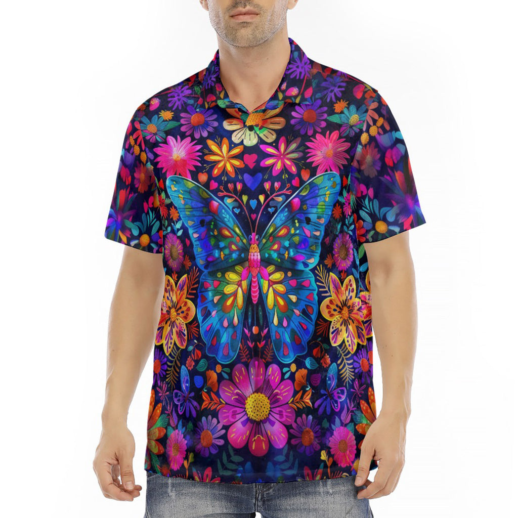 Men's Polo Shirt Neon Butterfly Colorful Flowers