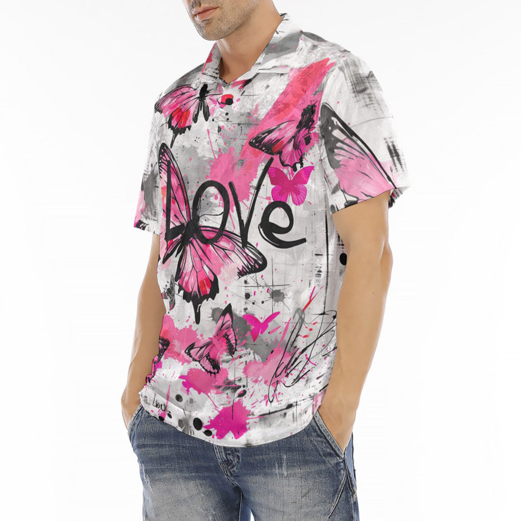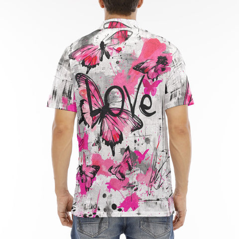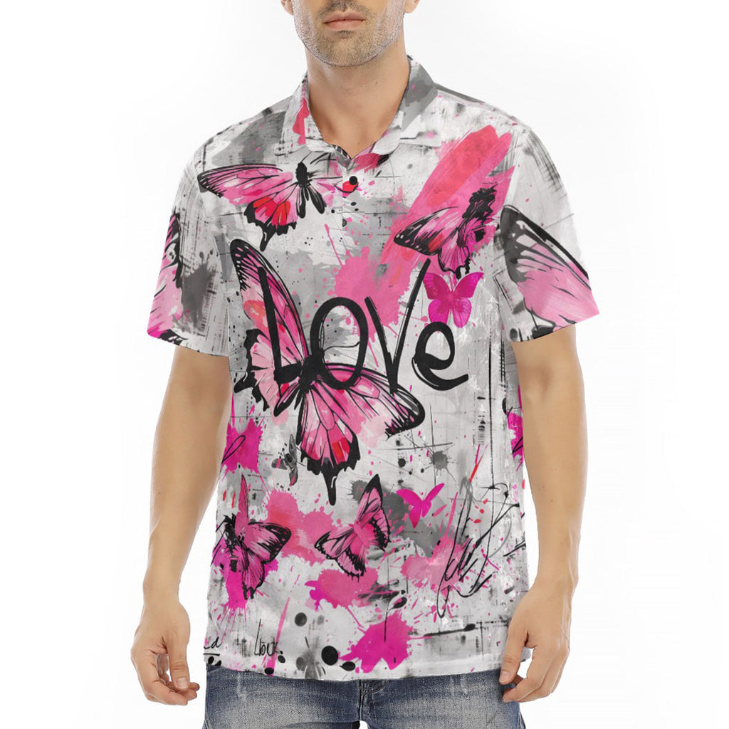 Men's Polo Shirt Pink Butterflies Graffiti Art