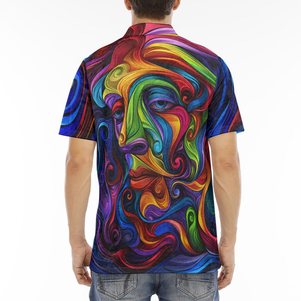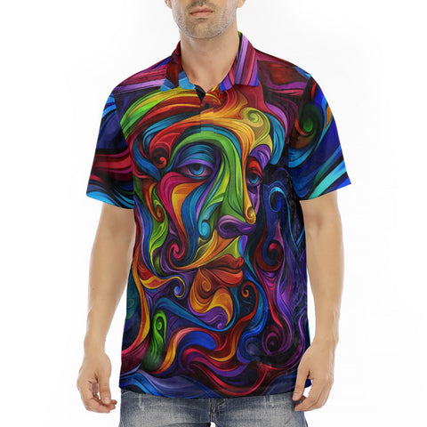 Men's Polo Shirt Psychedelic Colorful Swirling Waves