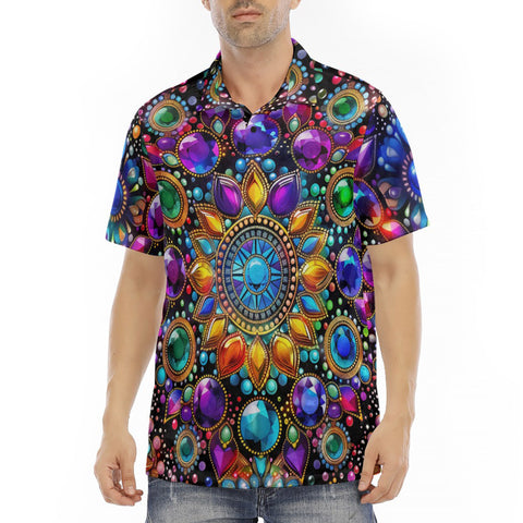 Men's Polo Shirt Shiny Gemstones Bright Colors Mandala