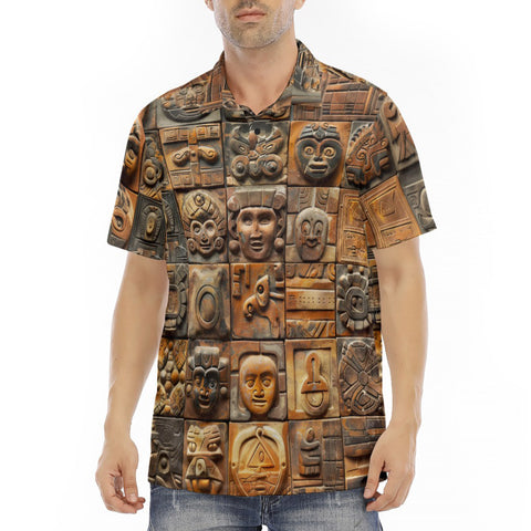Men's Polo Shirt Terracotta Tiles Carvings Faces