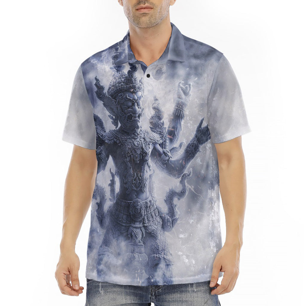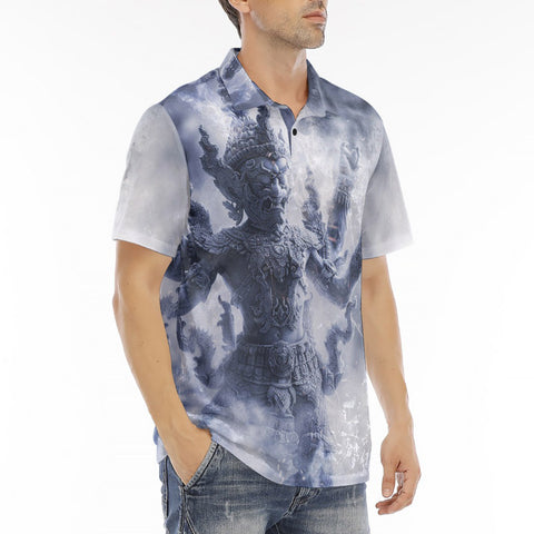 Men's Polo Shirt Thai Demon Surrounded by Clouds and Mist