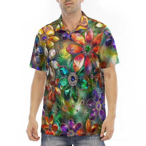 Men's Polo Shirt Vibrant Colors Crystal Flowers