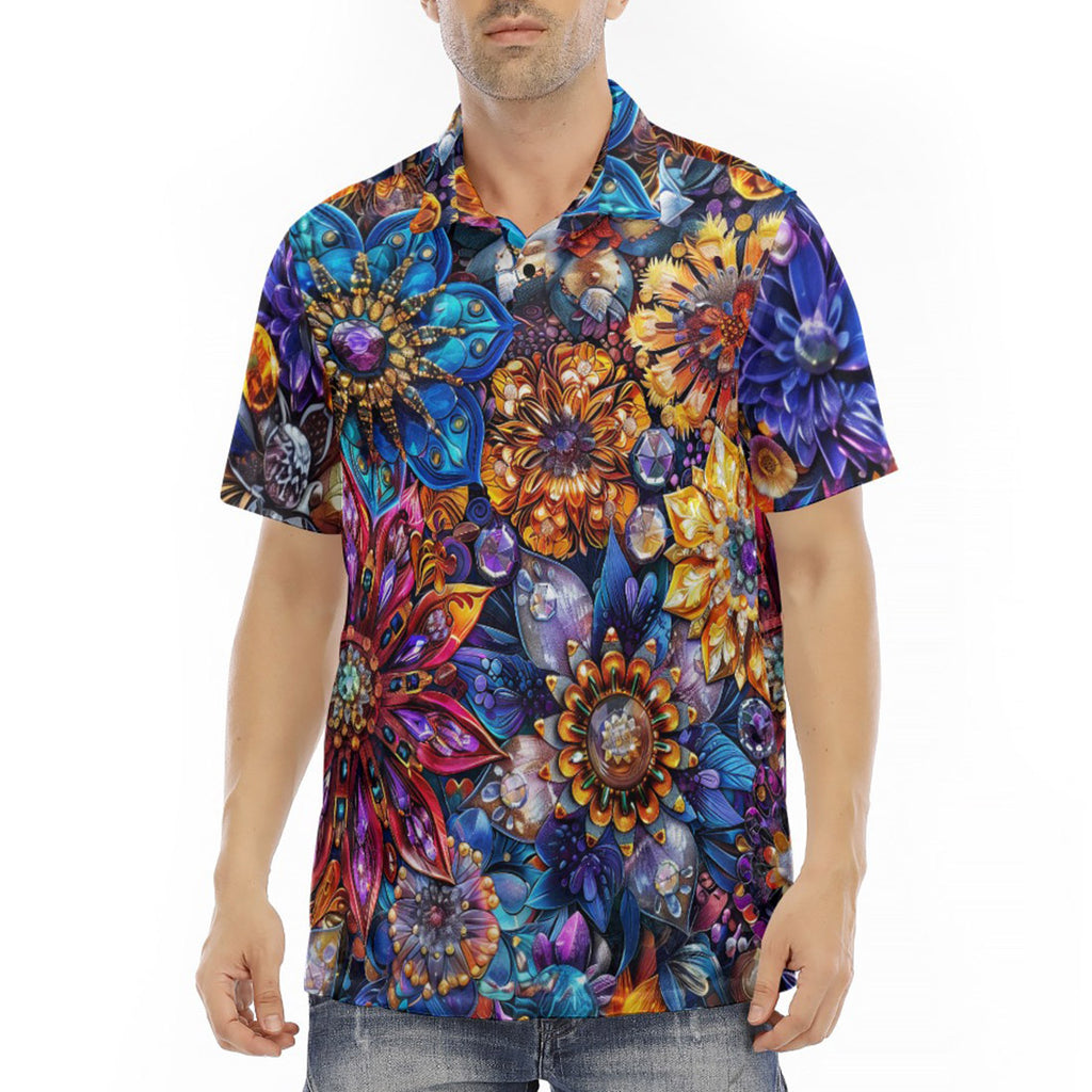 Men's Polo Shirt Vibrant Crystal and Gemstone Flowers
