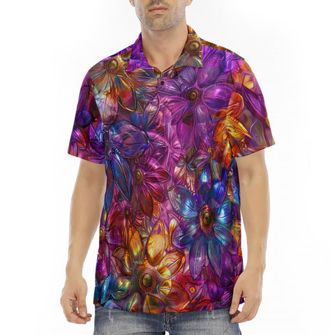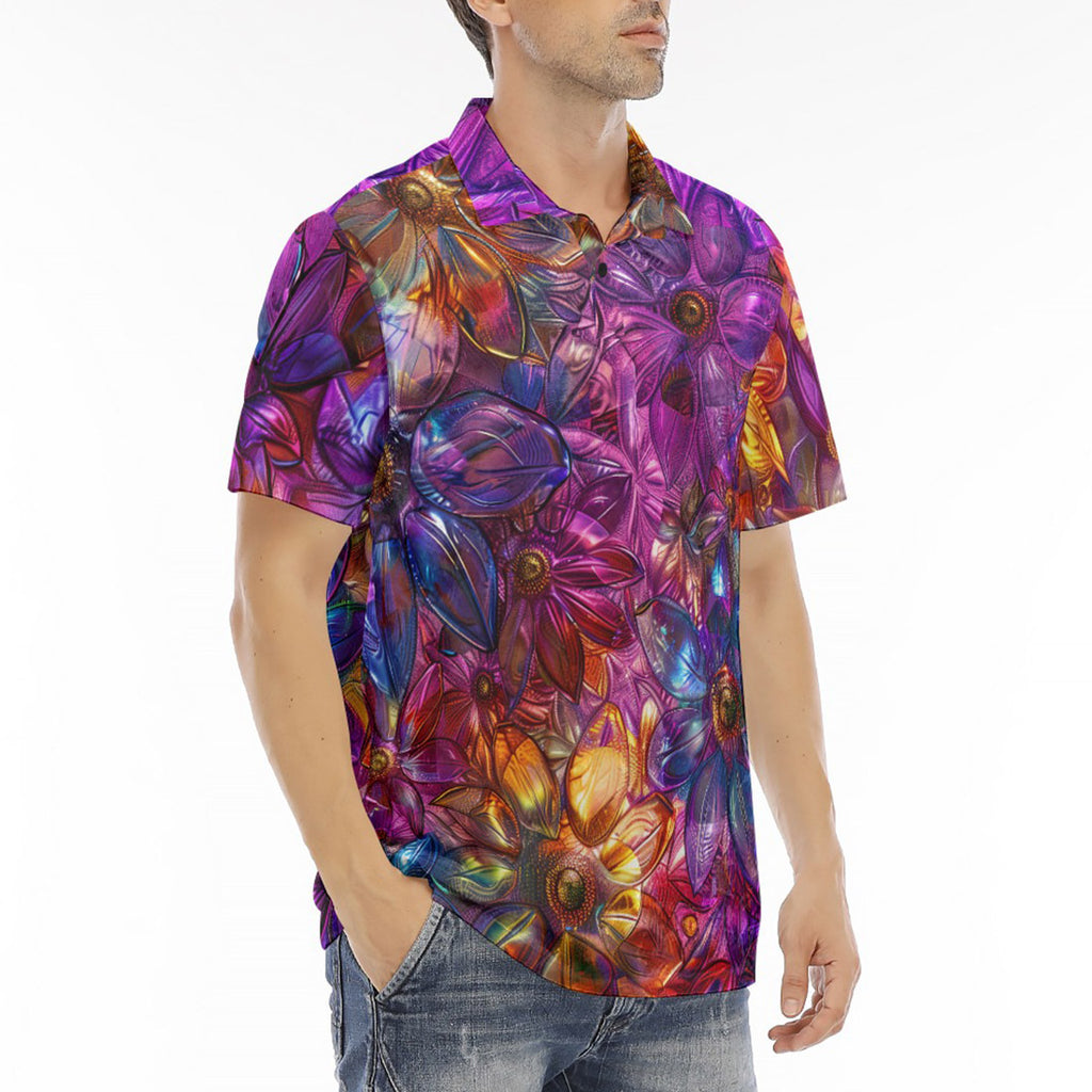 Men's Polo Shirt Vibrant Pattern of Crystal Flowers