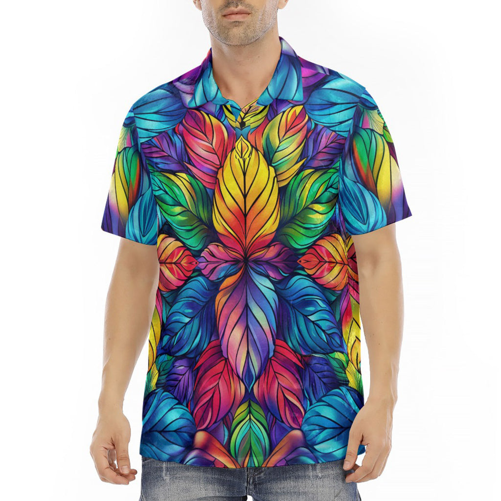 Men's Polo Shirt Vibrant Rainbow Leaves