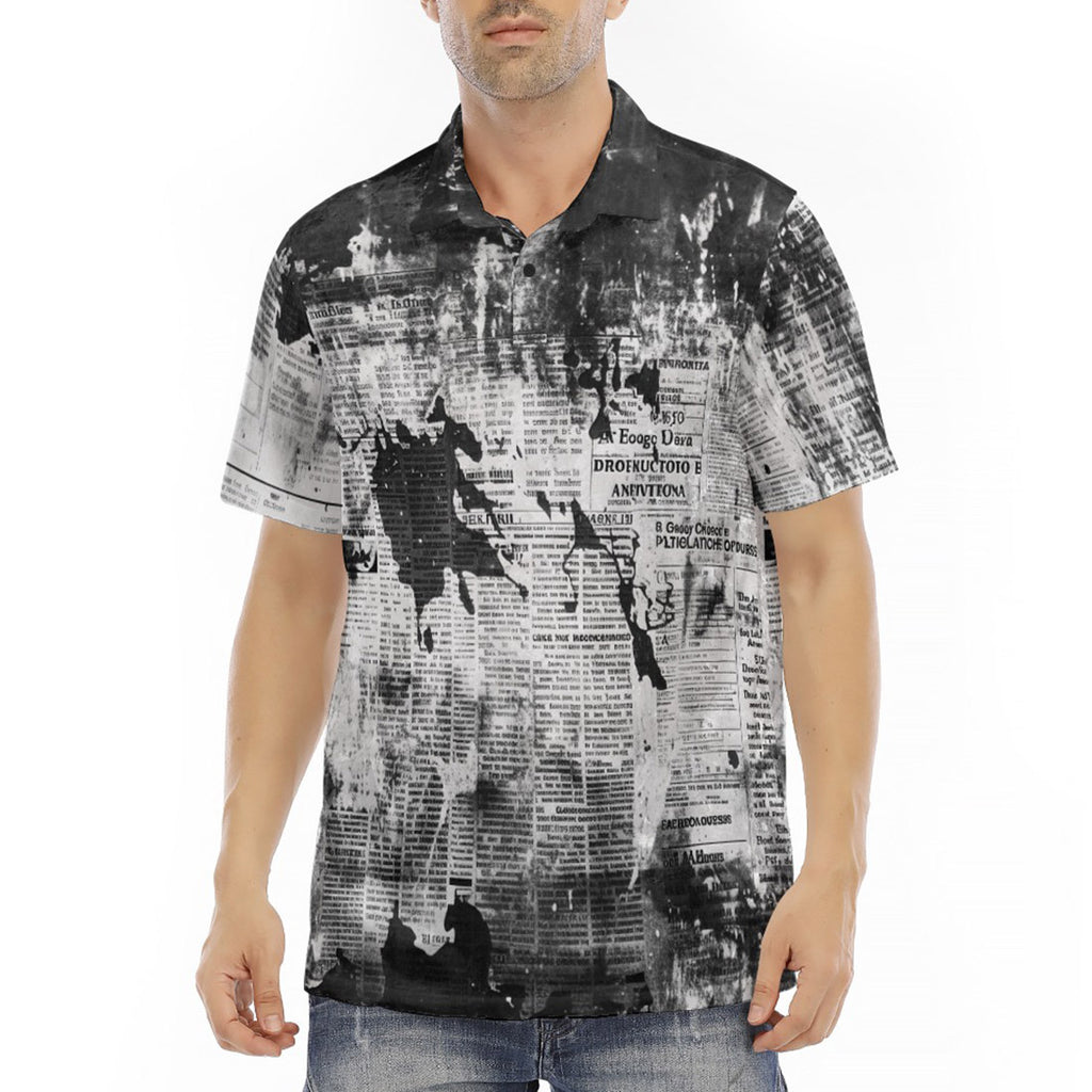 Men's Polo Shirt Vintage Grungy Newspaper