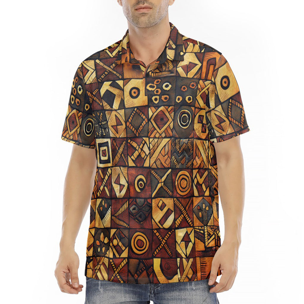 Men's Polo Shirt Wooden Carvings Tribal Symbols