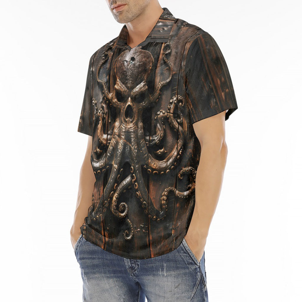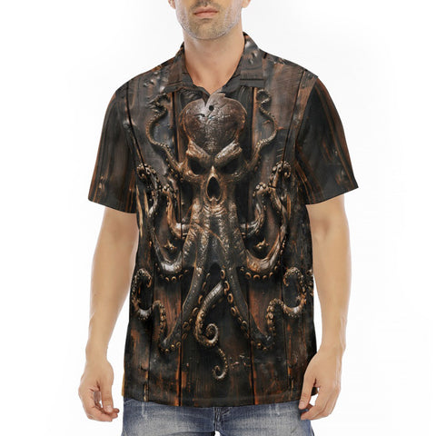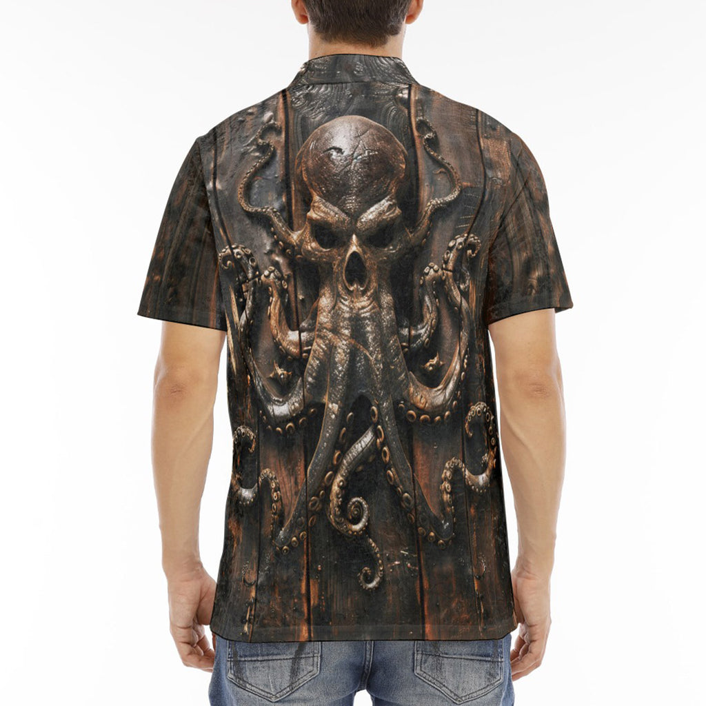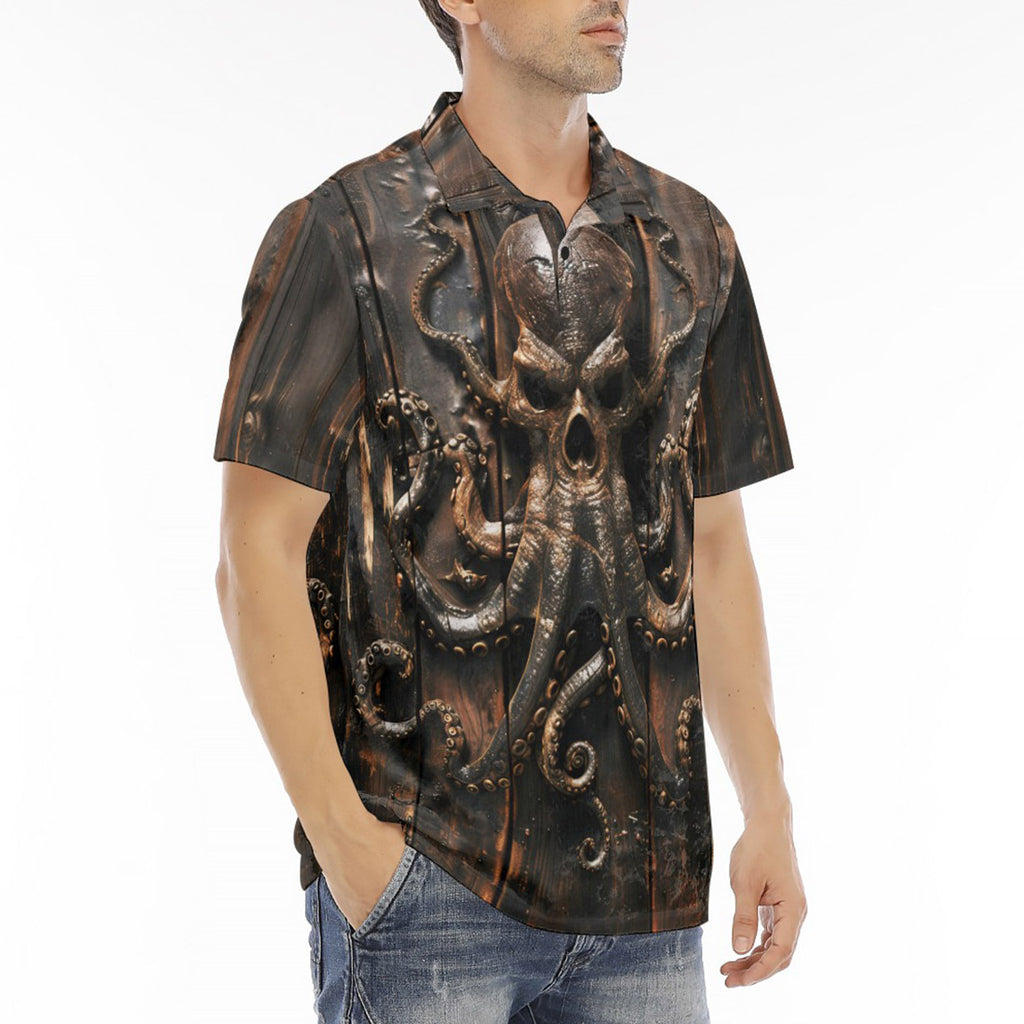 Men's Polo Shirt Wooden Texture Octopus Emblem