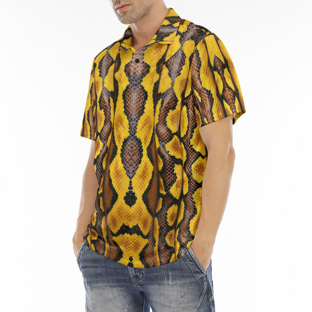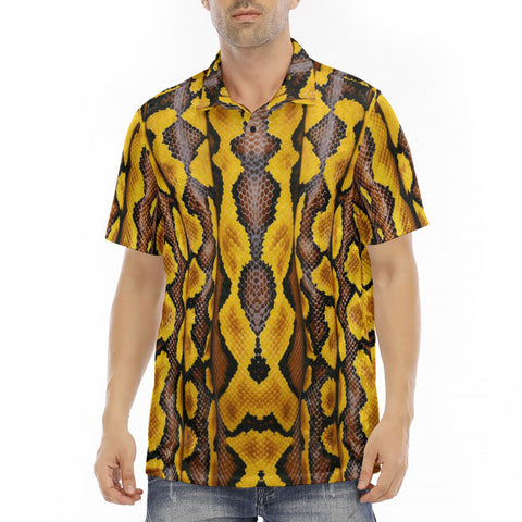 Men's Polo Shirt Yellow and Black Snake Skin Pattern