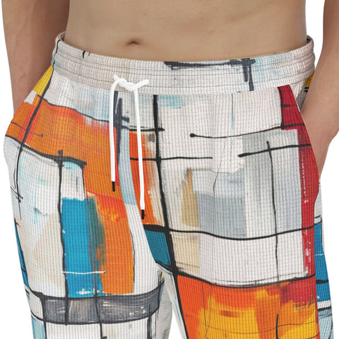 Men's Sweatpants Modern Art Abstraction Blue White and Yellow