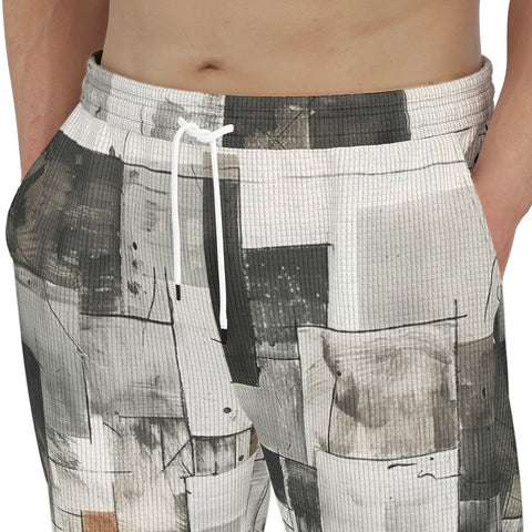 Men's Sweatpants Modern Art Abstraction Brown and White
