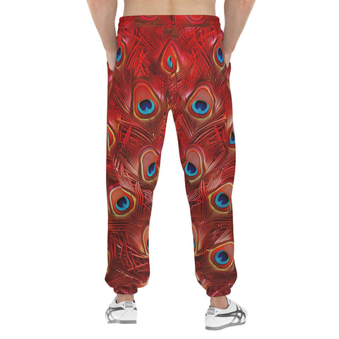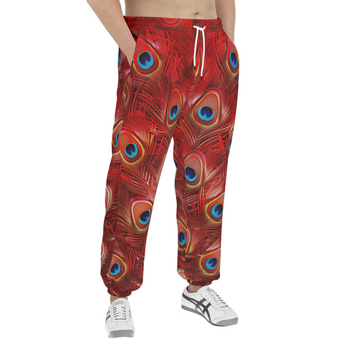 Men's Sweatpants Red Peacock Feathers