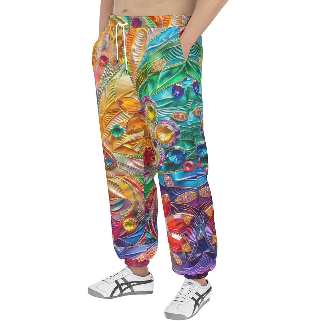 Men's Sweatpants Sparkling Gemstones with Flowers