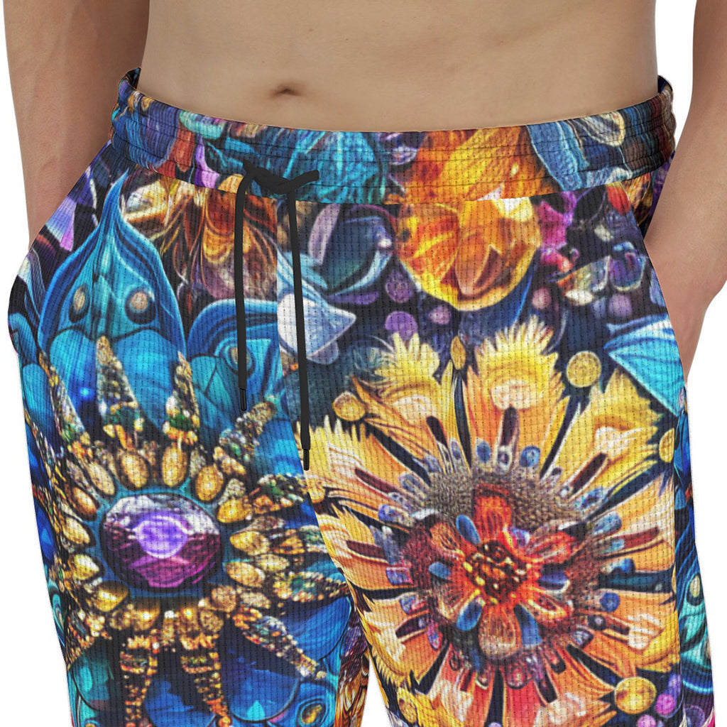 Men's Sweatpants Vibrant Crystal and Gemstone Flowers