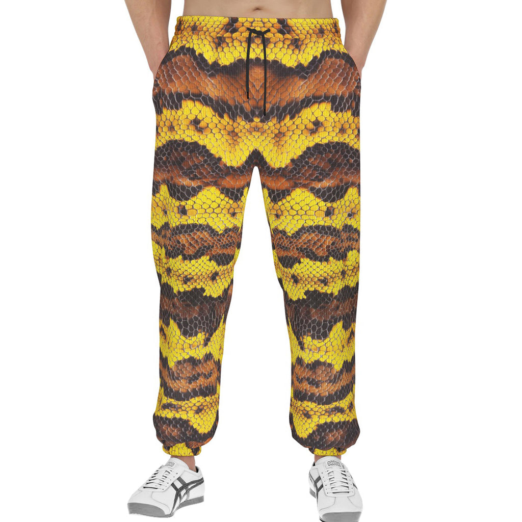 Men's Sweatpants Yellow and Brown Snake Skin Print