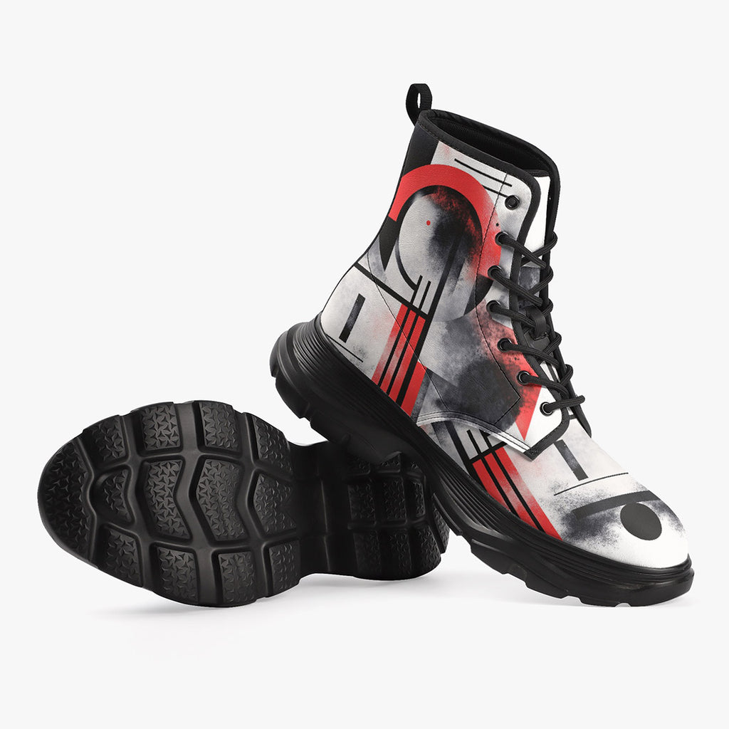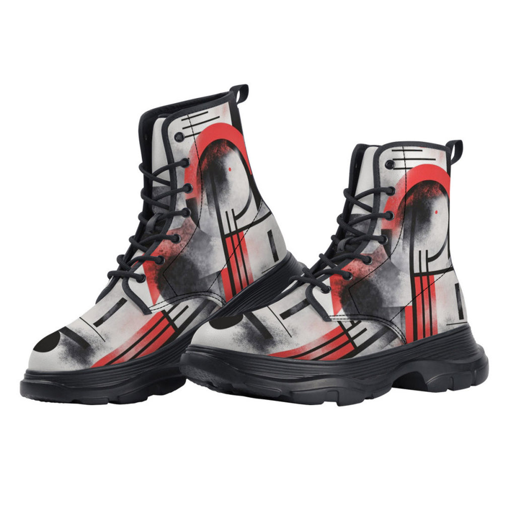 PU Leather Chunky Boots Abstract Composition with Geometric Shapes