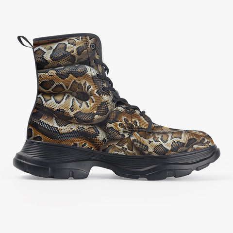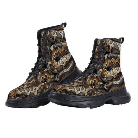 - Features a rounded toe construction and lace-up closure for a snug fit.
