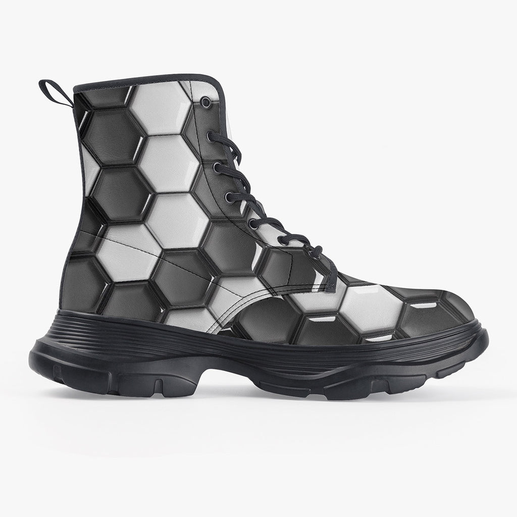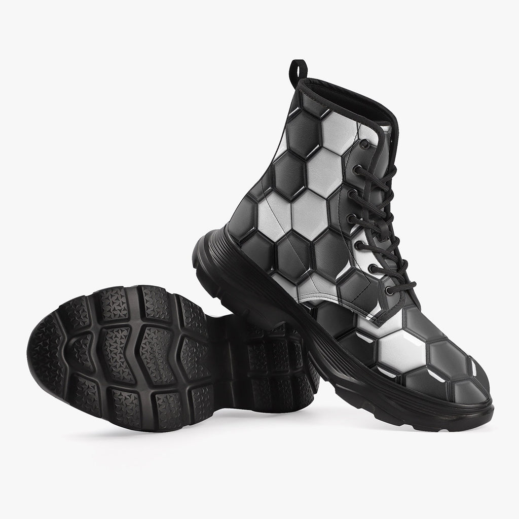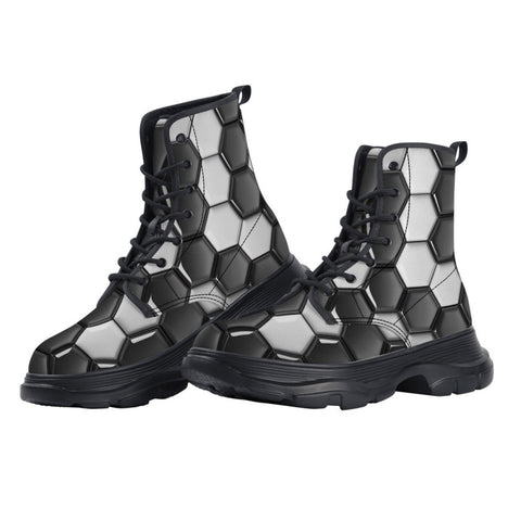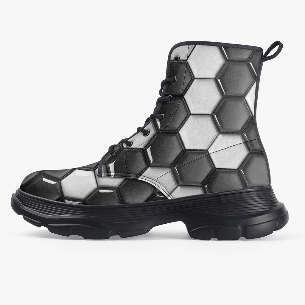 PU Leather Chunky Boots Soccer Ball Texture