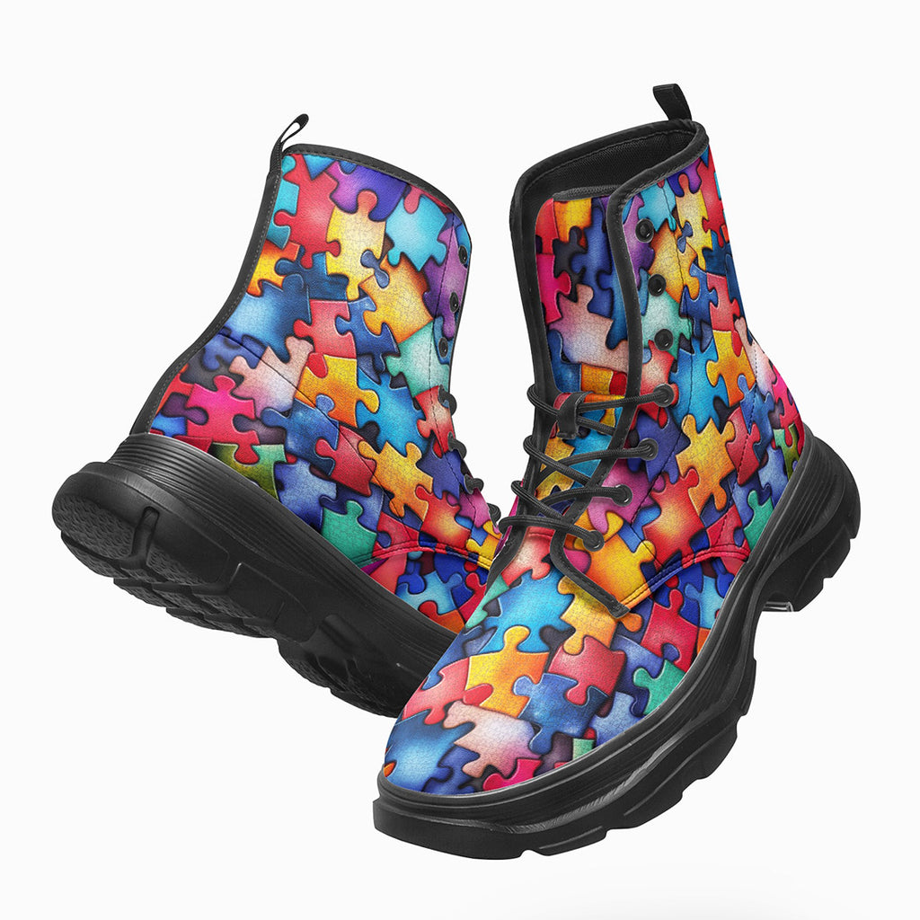 PU Leather Chunky Boots Vibrant Colorful Puzzle
