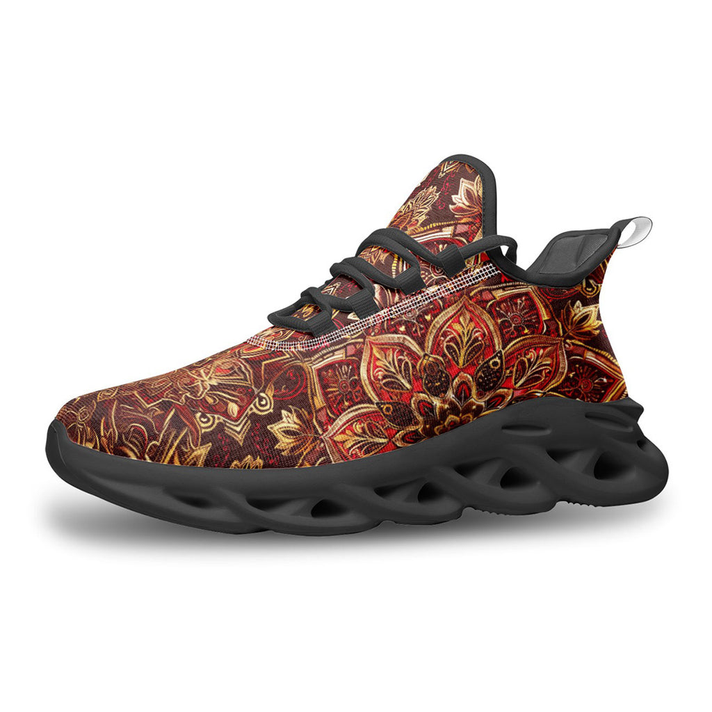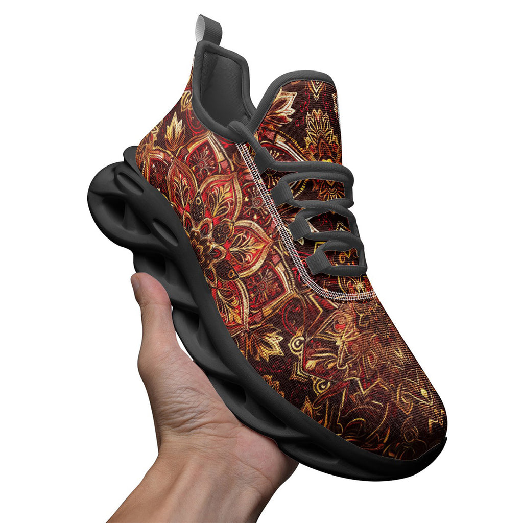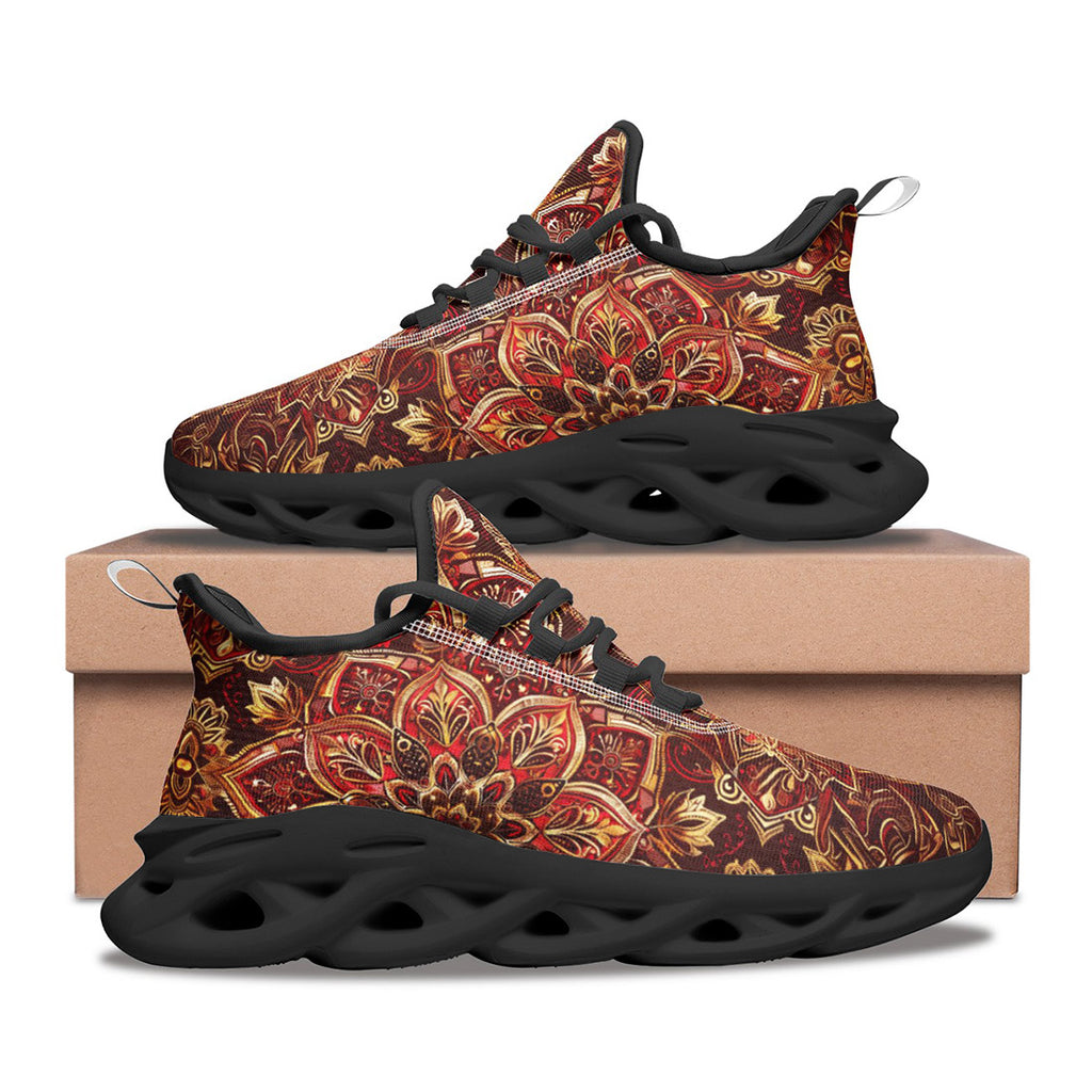 Sports Mesh Sneakers Golden and Red Arabesque Pattern