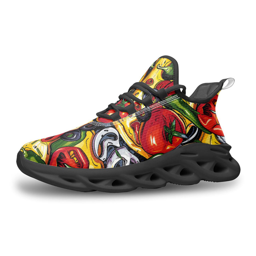 Sports Mesh Sneakers Pizza Ingredients Pattern
