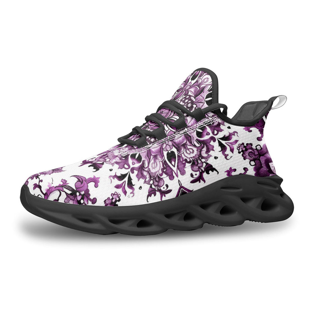 Sports Mesh Sneakers Watercolor Purple Flowers Pattern