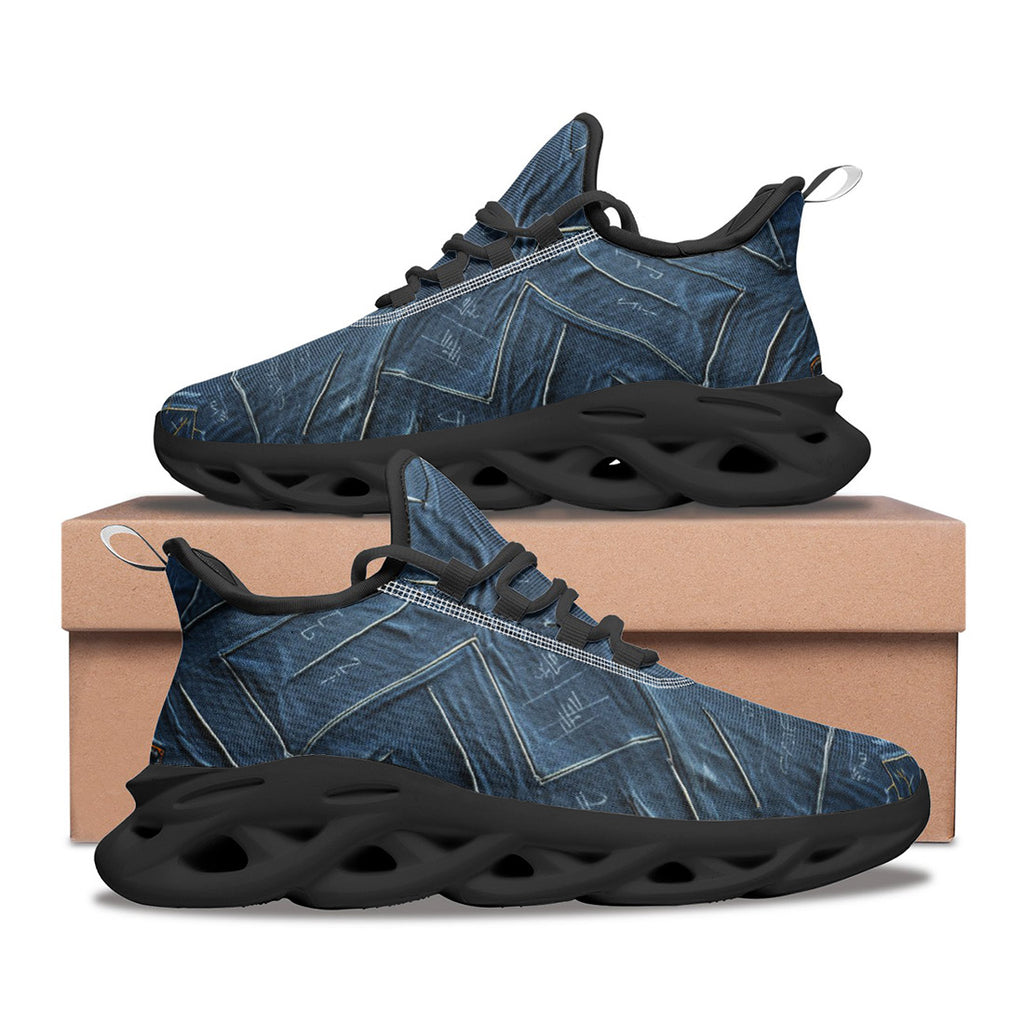 Sports Sneakers Abstract Blue Denim Cloth Print